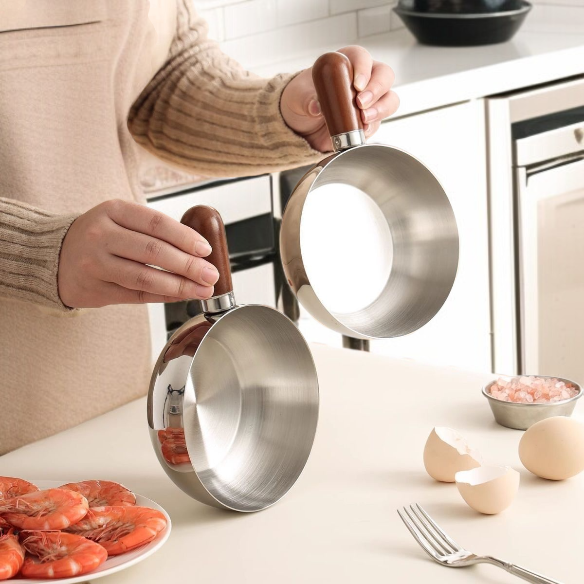 골드 편수 스텐볼 이유식볼 샐러드볼 밥공기 이유식냄비 손잡이양념볼